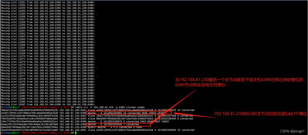 咱們要清楚一點(diǎn),只有主節(jié)點(diǎn)是有槽位的,因此呢需要將主節(jié)點(diǎn)的槽位分配給其他主節(jié)點(diǎn),當(dāng)槽位清空后,這個(gè)主機(jī)節(jié)點(diǎn)就可以下線了。