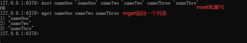 當(dāng)然也可以通過mset、mget批量讀寫:
