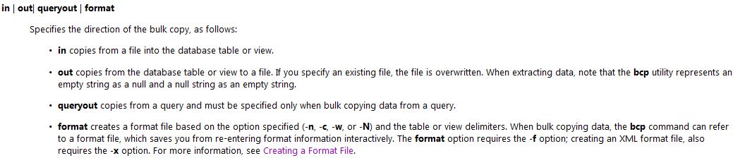 bcp {[[database_name.][schema].]{table_name | view_name} | "query"}