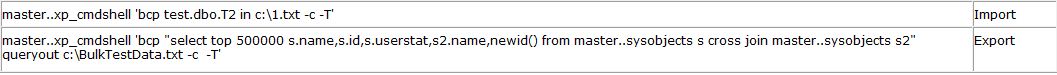 3.BCP,可以用作大容量的數(shù)據(jù)導入導出,也可以配合xp_cmdshell來使用.