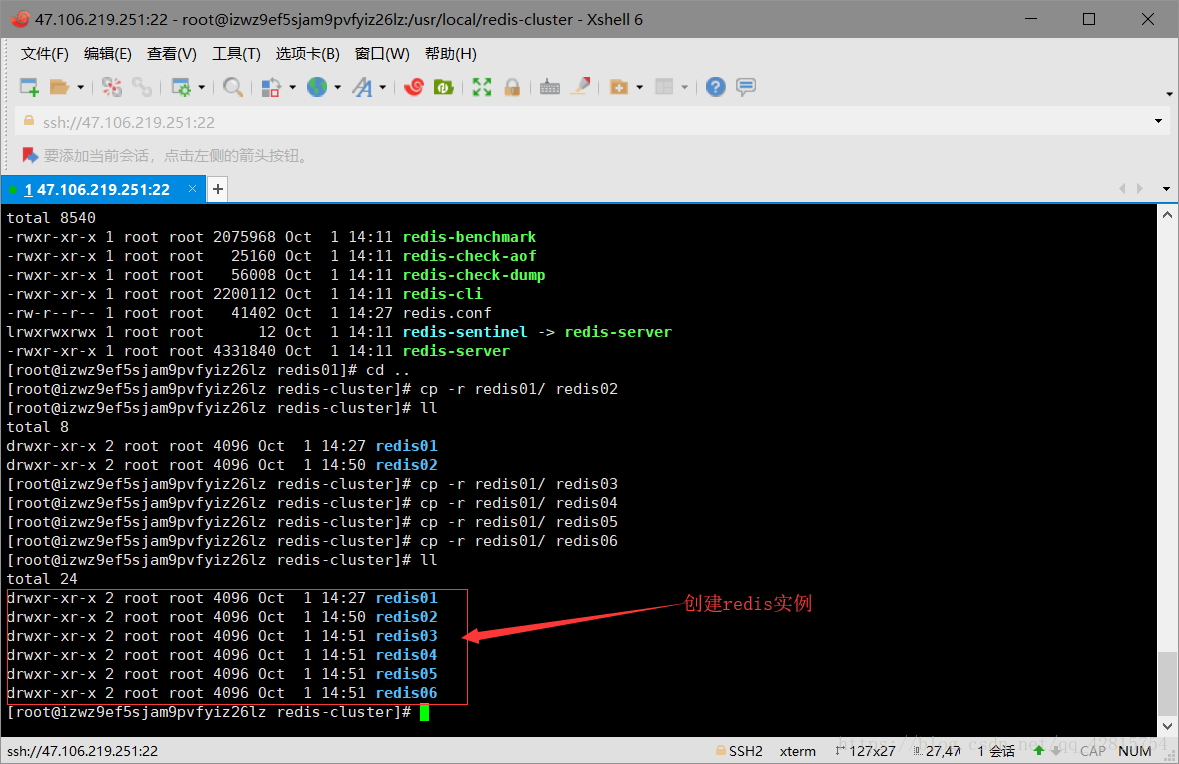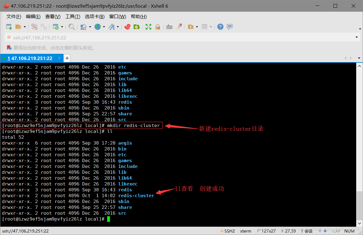 3.1 在usr/local目錄下新建redis-cluster目錄,用于存放集群節(jié)點(diǎn)