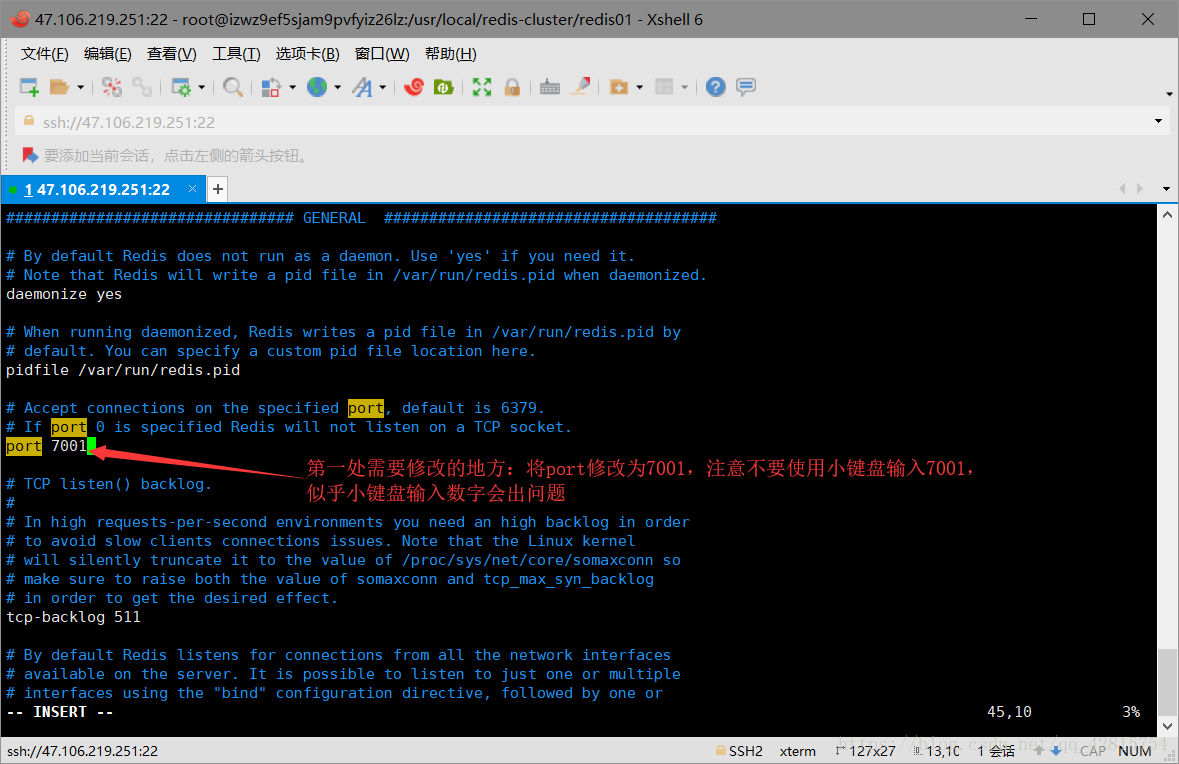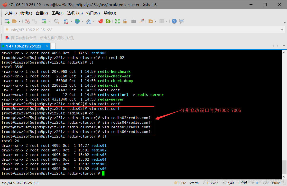 分別修改redis.conf文件端口號(hào)為7002-7006