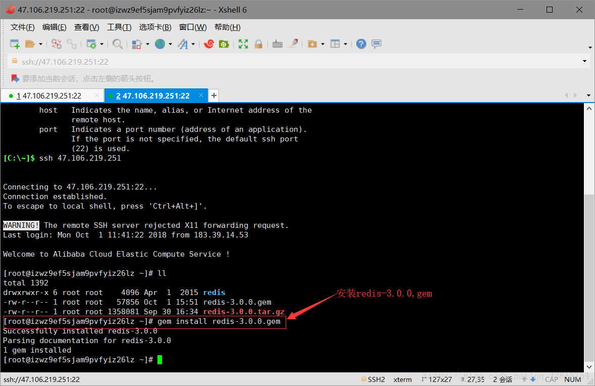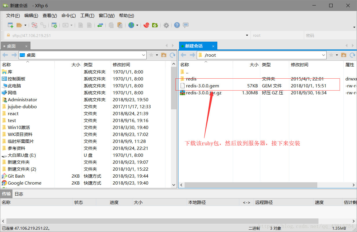 然后需要把ruby相關(guān)的包安裝到服務(wù)器,我這里用的是redis-3.0.0.gem,大家需要注意的是:redis的版本和ruby包的版本最好保持一致。