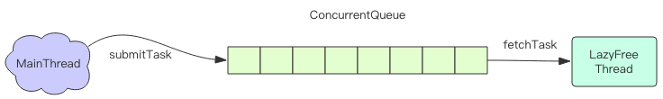 Redis4.0,主線程將對象的引用從「大樹」中摘除后,會(huì)將這個(gè) key 的內(nèi)存回收操作包裝成一個(gè)任務(wù),塞進(jìn)異步任務(wù)隊(duì)列,后臺(tái)線程會(huì)從這個(gè)異步隊(duì)列中取任務(wù)。任務(wù)隊(duì)列被主線程和異步線程同時(shí)操作,所以必須是一個(gè)線程安全的隊(duì)列。