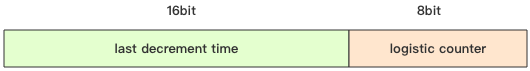 lru 字段 24 個(gè) bit 用來存儲(chǔ)兩個(gè)值,分別是ldt(last decrement time)和logc(logistic counter)。