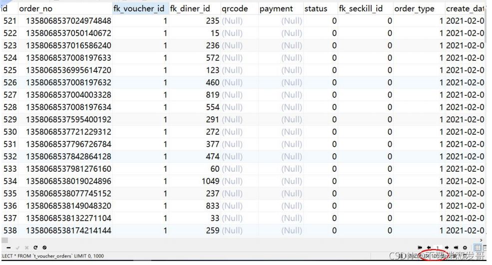 查看 redis 中 amount=0 ,不會(huì)變成負(fù)值 查看數(shù)據(jù)庫下單表 t_voucher_orders ,共計(jì)下 100 個(gè)訂單。