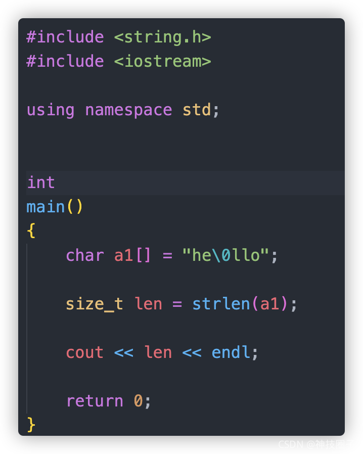 先來看看char*字符數(shù)組的結構,其實很簡單就是開辟一塊連續(xù)的內存空間來依次存放每一個字符,最后一個字符是"\0"表示字符串結束。C庫中的字符串操作函數(shù)就是通過檢查"\0"來判斷字符串結束。比如strlen函數(shù)就是遍歷字符數(shù)組中的每一個字符并計數(shù),直到遇到"\0"結束計數(shù),然后返回計數(shù)結果。下面我們通過一個代碼來看看"\0"結束字符對字符串長度的影響。