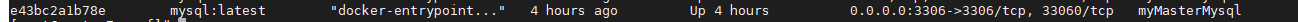 docker run -itd --privileged=true -p 3306:3306 \ --name myMasterMysql -e MYSQL_ROOT_PASSWORD=123456\ -v /root/redisconf/masterMySQL/conf:/etc/mysql/conf.d\ -v /root/redisconf/masterMySQL/data:/var/lib/mysql mysql:latest