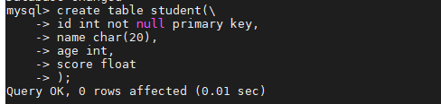2.2 創(chuàng)建student數(shù)據(jù)表