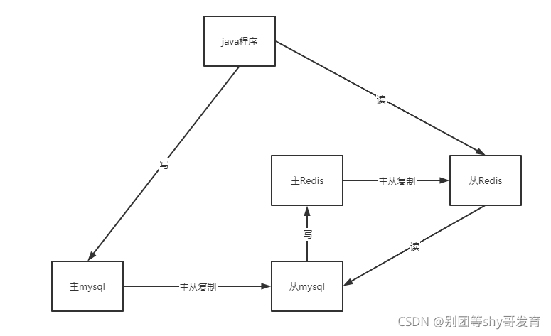 應(yīng)用程序先到“從Redis服務(wù)器”里讀取緩存,如果找不到,就再到從mysql數(shù)據(jù)庫里去讀。