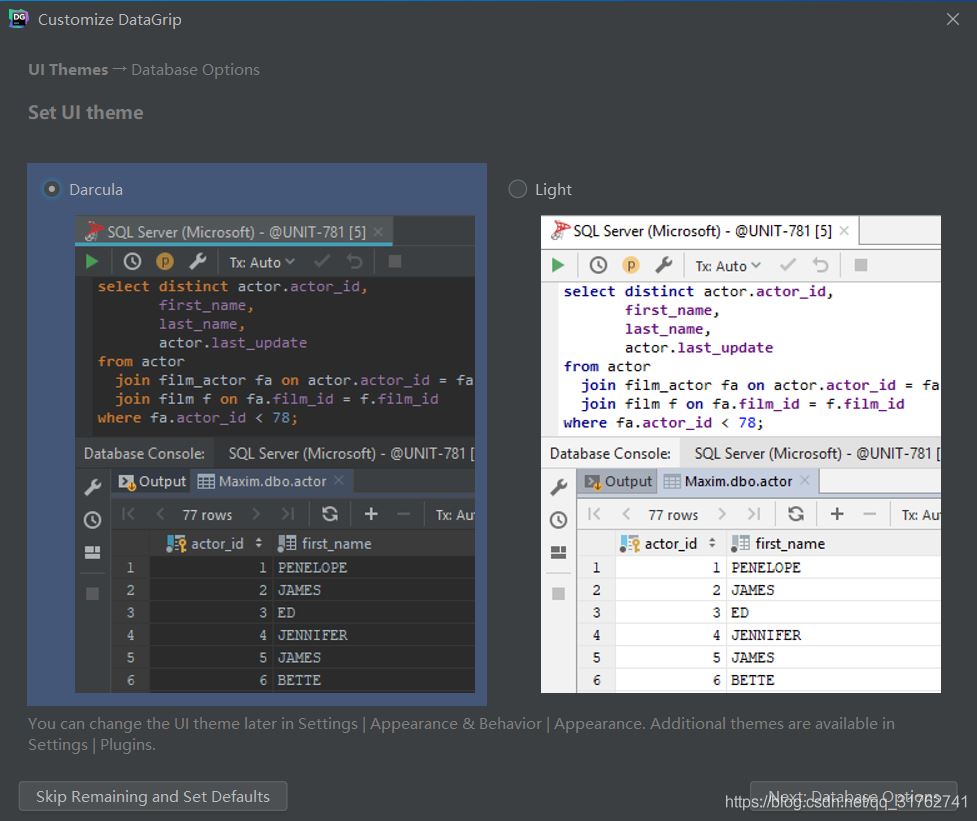 選擇主題方案,然后點(diǎn)擊Next: Database Options