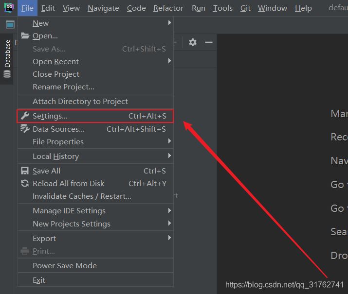 點(diǎn)擊Settings,或者按快捷鍵Ctrl+Alt+S