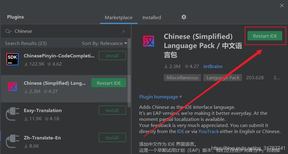 點(diǎn)擊Restart IDE,等待自動(dòng)重啟即可
