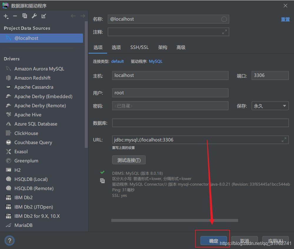 點(diǎn)擊 測(cè)試連接/Test Connection進(jìn)行測(cè)試連接