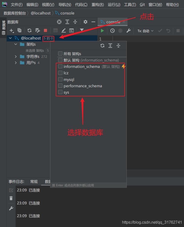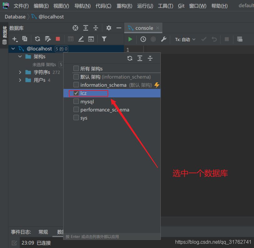 選中的數(shù)據(jù)庫會(huì)在架構(gòu)里面顯示出來