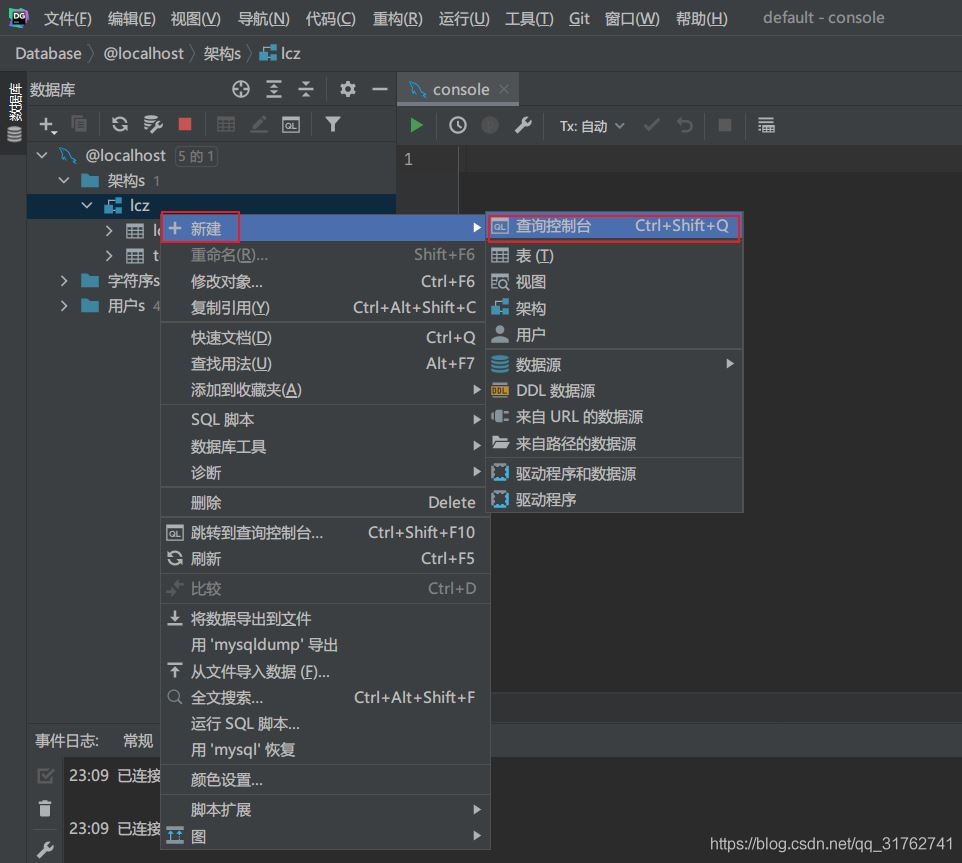 選中要查詢的數(shù)據(jù)庫,右鍵:新建>查詢控制臺(tái)