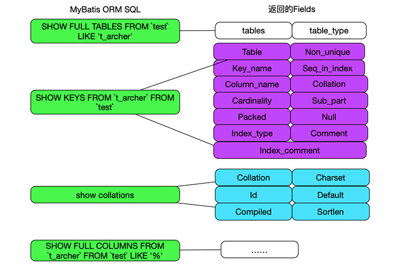 如果想讓mybatis可以自動生成關(guān)于Freedom的代碼,還需實現(xiàn)一些特定的sql來展現(xiàn)Freedom的元信息。這個在筆者另一個項目rider中有這樣的實現(xiàn)。原理如下圖所示: