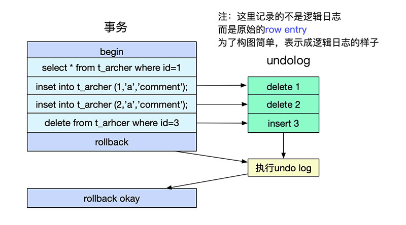 由于日志中記錄了undo,所以對于一個事務(wù)的回滾直接通過日志進(jìn)行undo即可。如下圖所示: