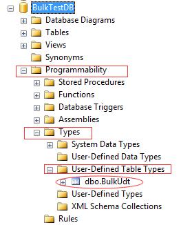 --Create Table Valued CREATE TYPE BulkUdt AS TABLE (Id int, UserName nvarchar(32), Pwd varchar(16))