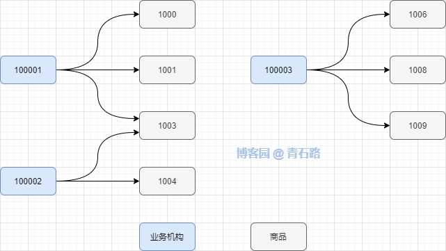 業(yè)務(wù)機(jī)構(gòu)下銷(xiāo)售商品,同個(gè)業(yè)務(wù)機(jī)構(gòu)可以銷(xiāo)售不同的商品,同個(gè)商品可以在不同的業(yè)務(wù)機(jī)構(gòu)銷(xiāo)售,也就說(shuō):業(yè)務(wù)機(jī)構(gòu)與商品是多對(duì)多的關(guān)系