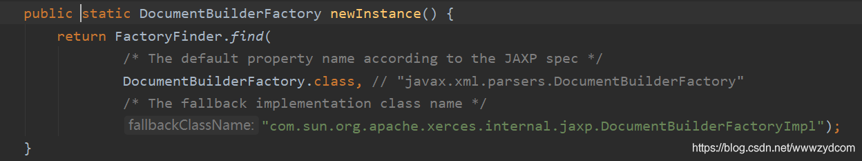 DocumentBuilderFactory 是jdk自帶的解析xml文件操作,位于 javax.xml.parsers 包,如圖其是一個抽象類,因此無法被實例化
