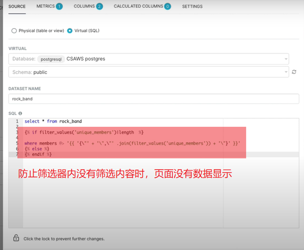因為sql里面可以使用jinja 表達(dá)式,比如判斷篩選當(dāng)前沒有篩選的時候,獲取什么數(shù)據(jù)