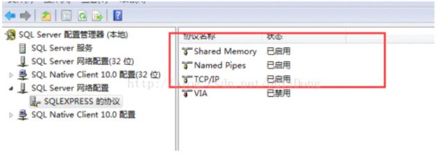還有一個是SQL server配置管理器,打開網(wǎng)絡(luò)配置,再到協(xié)議,將需要的進(jìn)行啟動或重啟