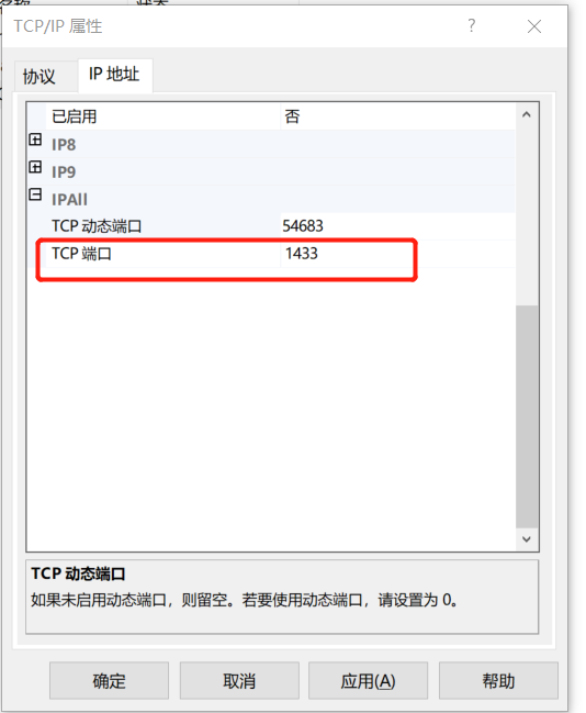 將IPALL的TCP端口也設(shè)置為1433,如圖