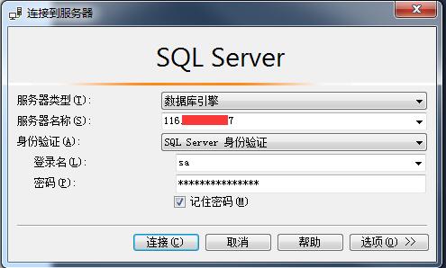輸入遠程服務(wù)ip地址或者域名:1433/實例名
