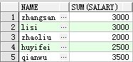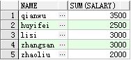 select ?name , sum(salary) ? ?from ? student ? ?group ?by ? name , grade ? ? ?按照名字和等級(jí)劃分,查看相同名字下的工資總和