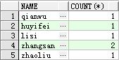 count():計(jì)數(shù)select ?name , count(*) ?from ?student ? group ?by ?name ? ? ? ? ? 查看表中相同人名的個(gè)數(shù)