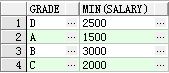 min():最小值select ? grade , min(salary) ? from ? student ? group ?by ? grade ? ? ? ?查看按等級(jí)劃分人員工資最小值
