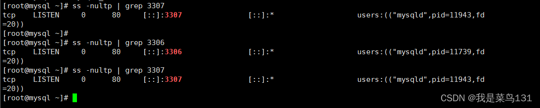 ss -nultp | grep 3306 ss -nultp | grep 3307