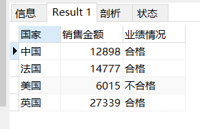 否則為不合格,結(jié)果輸出國(guó)家銷售金額業(yè)績(jī)情況。