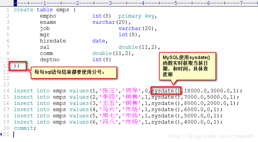 day01.sql文件中包含一些列的sql語(yǔ)句,每條語(yǔ)句最后以;結(jié)尾,文件內(nèi)容示例如下: