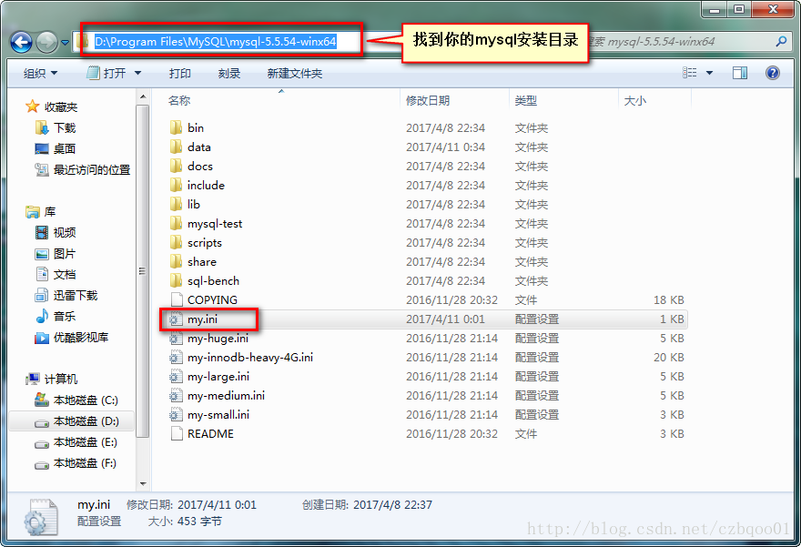 找到你的mysql安裝目錄下,找到my.ini文件,用記事本打開(kāi)