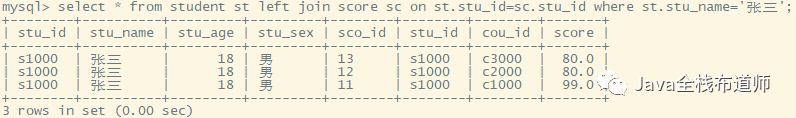 列名為avg(stu_age) 看著有點(diǎn)怪怪,給他取個(gè)別名就一目了然: