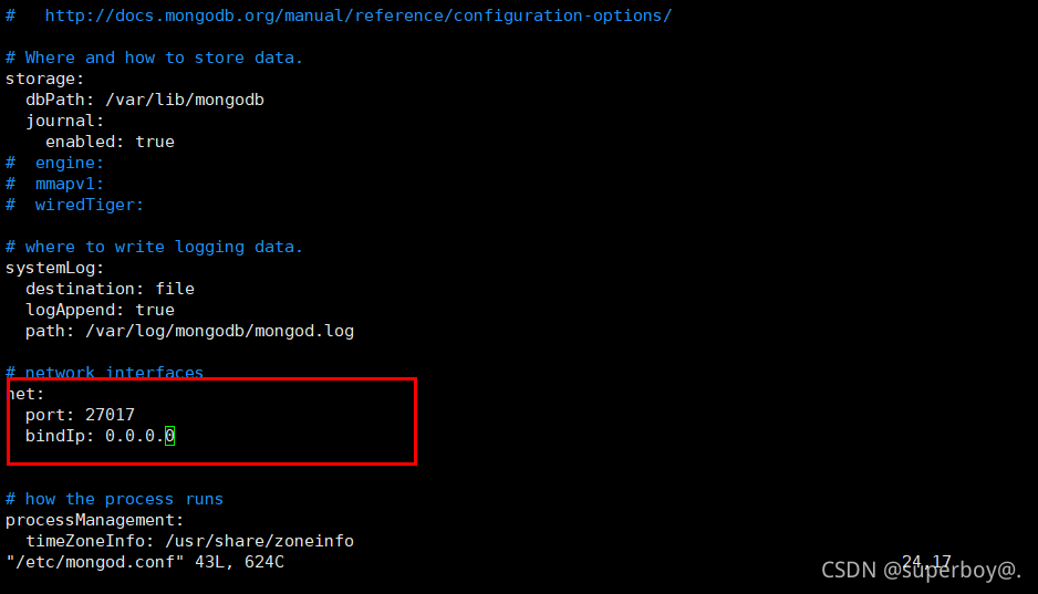 1.8 修改配置,開放27017端口 ,以及開發(fā)外網(wǎng)鏈接