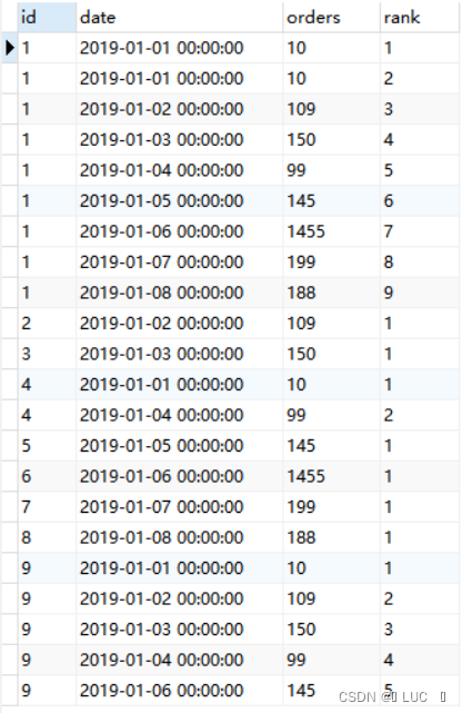 2.使用row_number() over()? 排序函數(shù)計(jì)算每個(gè)id的排名,SQL如下: