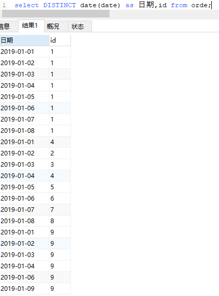 select *,row_number() over(PARTITION by id order by 日期) as cum from (select DISTINCT date(date) as 日期,id from orde)a;