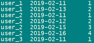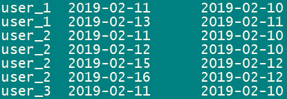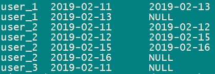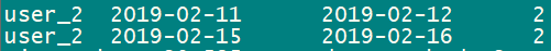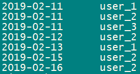 ('2019-02-15','user_2',19),('2019-02-16','user_2',19);
