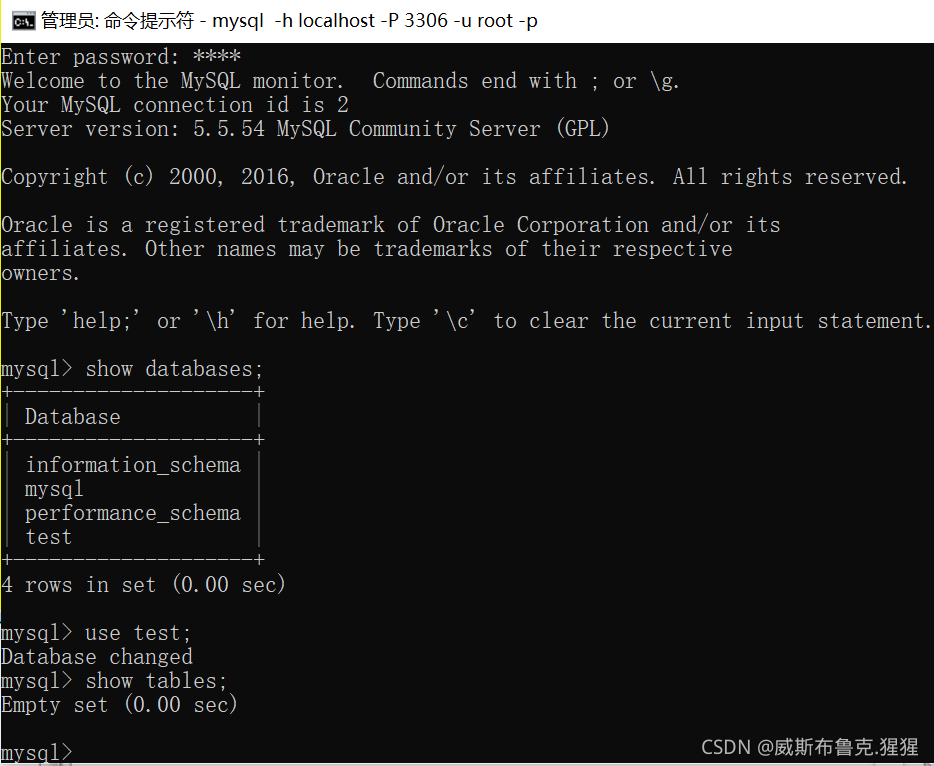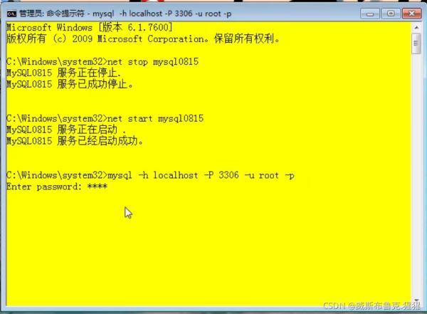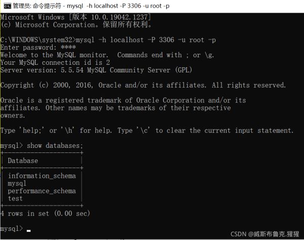 登陸:必須以管理員身份打開(kāi)命令提示符 ****(代表的是密碼1234)