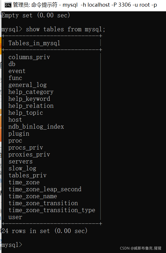 b.show tables from mysql;