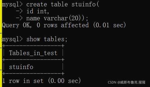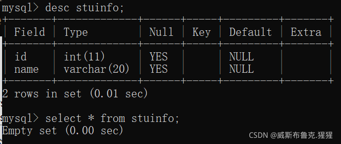 6)看創(chuàng)建好的表的結(jié)構(gòu) desc + 表名