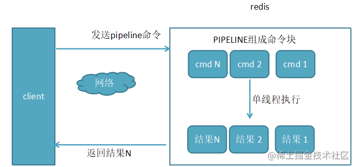 注意:并不是拼接的子命令越多越好,N值也有是上限的,當(dāng)拼接命令過長時會導(dǎo)致客戶端等待很長時間,造成網(wǎng)絡(luò)堵塞;我們可以根據(jù)實際情況,把大批量命令拆分成幾個PIPLINE執(zhí)行。
