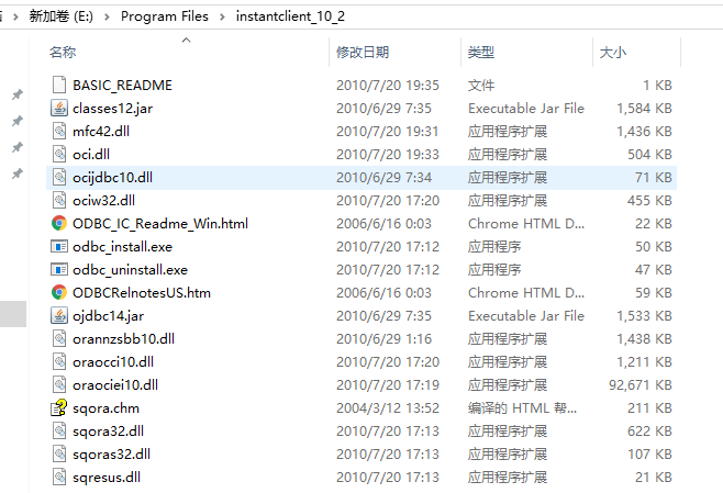 本人剛好有之前版本,路徑為 E:\Program Files\instantclient_10_2