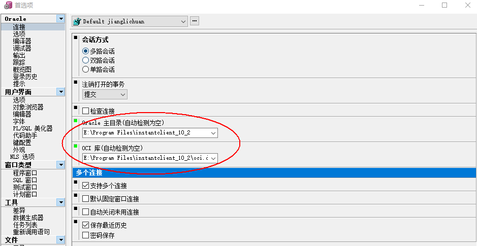 2、打開(kāi)PLSQL,點(diǎn)取消,然后彈出PLSQL主界面,點(diǎn)擊菜單欄的“工具”--“首選項(xiàng)”,設(shè)置Oracle主目錄和OCI庫(kù),路徑為第一步路徑: