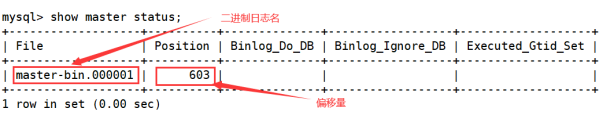 [root@localhost ~]# vim /etc/my.cnf server-id = 1 #注意id不能相同 log-bin=master-bin #添加,主服務器開啟二進制日志 log-slave-updates=true #添加,允許從服務器更新二進制日志 [root@localhost ~]# systemctl restart mysqld #重啟服務使配置生效 [root@localhost ~]# mysql -uroot -p123456 #登錄數據庫程序 mysql> grant replication slave on *.* to 'myslave'@'192.168.32.%' identified by '123456'; #給從服務器授權 mysql> flush privileges; mysql> show master status; #File 列顯示日志名,F(xiàn)osition 列顯示偏移量
