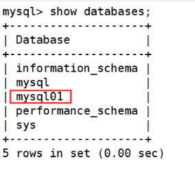 ①主服務器上進入執(zhí)行,創(chuàng)建一個數據庫名為“mysql01”