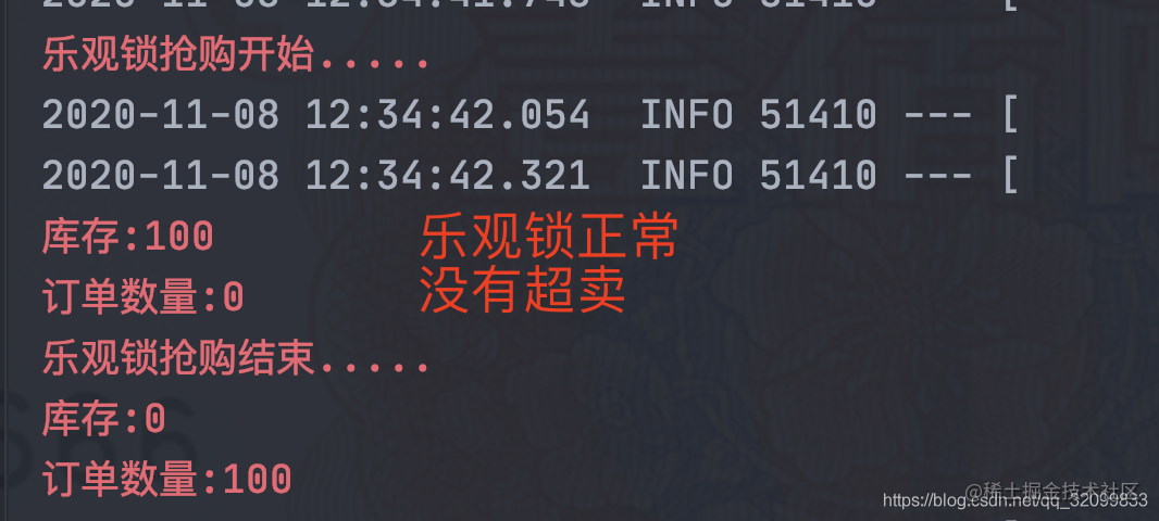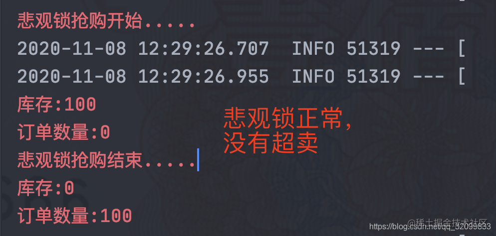 初始數(shù)據(jù):ID為1的商品有100的庫存,訂單表數(shù)據(jù)為空。